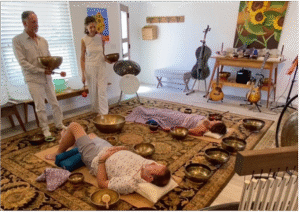 Binaural Beats, or two dissonant notes beating against each other, are used in sound healing to release energy blockages and balance the chakras. The consensus is that binaural beats stimulate intentionality, self-healing, and trauma release.