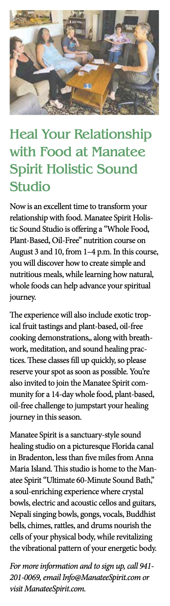 If you are ready to incorporate nutrient-dense whole foods that rev up your life force energy, decalcify your pineal gland, AND shrink your brown fat cells, then the Manatee Spirit Whole Food Plant-Based Oil-Free Course is perfect for you! This course includes five in-person or online teaching hours. It offers you a unique and straightforward approach to convincing your internal audience (subconscious mind) to say bye-bye to low vibrational food choices that no longer advance your soul journey.